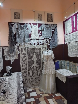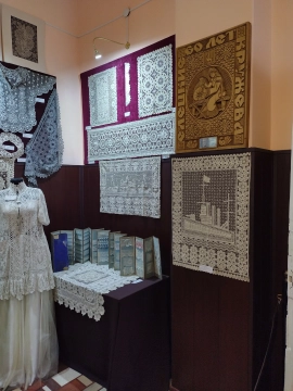 График работы: ПН-ПТ 8:00-17:00 (перерыв 12:00-13:00) ЗАПИСЬ НА ЭКСКУРСИЮ:+7 (47467) 2-02-05 (звонить ПН-ПТ 8:00-17:00) В музее находятся экспонаты из личного архива фабрики с конца XIX века. Экскурсии проводятся по всему производству, по 5 цехам. Кроме экскурсий проводятся мастер-классы. На фабрике существует 2 промысла: вышивка и кружевоплетение.