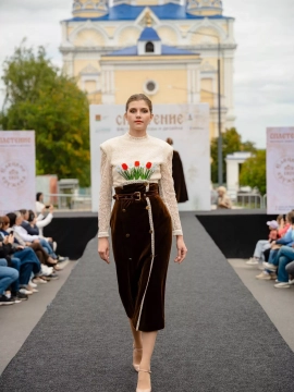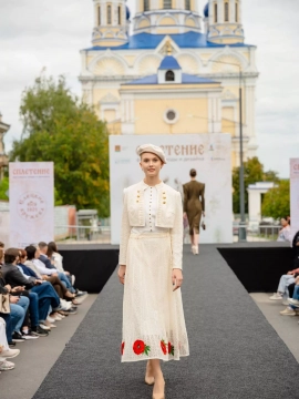 В День города гости фестиваля погрузились в атмосферу стиля, искусства и ремесленного мастерства. Праздничный показ открыла коллекция "Нежная сила" от ООО фабрика НХП "Елецкие кружева".