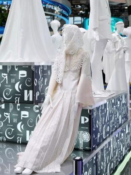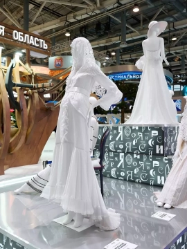 Фабрика предоставила сразу несколько моделей из своей коллекции для новой тематики подиума, который теперь рассказывает посетителям о свадебных традициях регионов нашей страны.