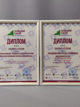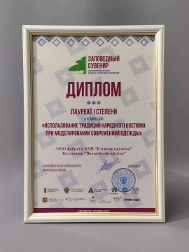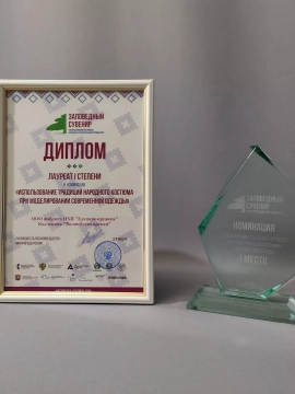 Мы стали лауреатом I степени в номинации "Использование традиций народного костюма при моделировании современной одежды" и лауреатом II степени в номинации "Продвижение бренда с помощью видеоконтента" на Всероссийском Фестивале народных художественных промыслов "Заповедный сувенир". Этот конкурс является важным событием для сохранения и развития традиционных ремесел и народных художественных промыслов, которые составляют неотъемлемую часть нашего культурного наследия.
