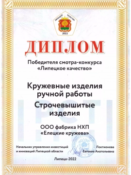 Конкурс «100 лучших товаров России» в этом году проводится в юбилейный 25-й раз. Дипломами «Липецкое качество» отмечена продукция АО «Липецкцемент» и ООО «ЛебедяньМолоко». По итогам федерального этапа право маркировать свою продукцию логотипом «100 лучших товаров России» получили АО «ЕЛЕЦГИДРОАГРЕГАТ», ООО «АВИКС ГРУПП, ОАО «Боринское», фабрика народного художественного промысла «Елецкие кружева». В номинации «Услуги для населения» дипломантами стали индивидуальный предприниматель Елена Сушкова, занимающаяся химчисткой, и предприятие по сбору и вывозу мусора ООО «ТЭКО-Сервис». Стоит отметить, что предприятие по выпуску газовых аппаратов и котлов ОАО «Боринское» в этом году побеждает в десятый раз. А это означает, что теперь его можно представить на звание «Лидера качества», что является высшим достижением в рамках конкурса «100 лучших товаров России».