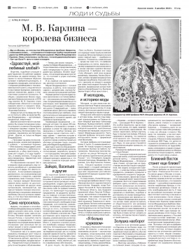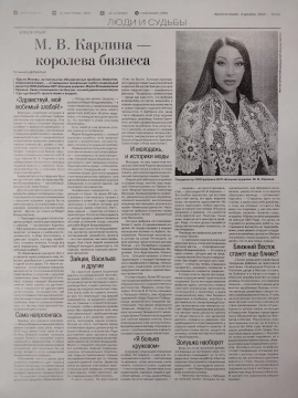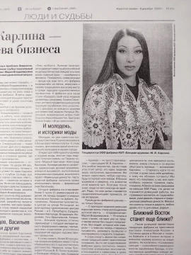Читайте новую статью "М.В. Карлина - королева бизнеса" в газете "КРАСНОЕ ЗНАМЯ" от 8.12.2022.