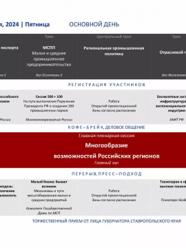 Участники форума-выставки также смогут посетить выездные ознакомительные туры по индустриальным паркам и предприятиям Ставропольского края.