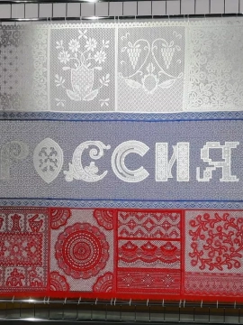 Почти пять месяцев кружевницы вручную выплетали панно в цветах российского триколора с символикой Выставки "Россия". Оно отражает любовь к Родине, традициям и ремеслу. В создании шедевра приняли участие мастерицы из восьми регионов страны: Вологодской, Ярославской, Нижегородской, Липецкой, Рязанской, Кировской, Ленинградской областей и Санкт-Петербурга.