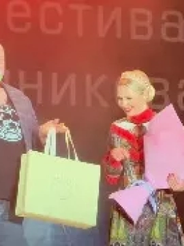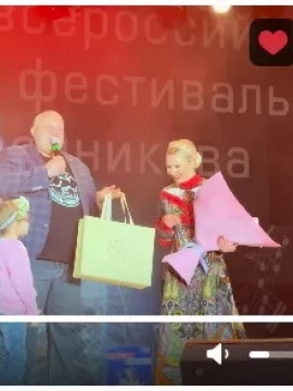 После выступления Пелагеи на Музыкальном фестивале имени Т.Н. Хренникова глава города Евгений Боровских вместе с дочкой Полиной передал ей подарок от елецких кружевниц.