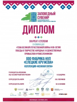 Для нас это не просто награда. Это признание глубины и красоты елецкого кружева, которое воплощает в себе хрупкость и силу, изящество и мощь — ту самую «нежную силу», что веками живет в нашем промысле.