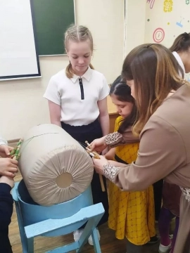 Кроме того, дошкольники детского сада №39 были приглашены на мастер-класс по кружевоплетению в школу №10 с углубленным изучением отдельных предметов. Педагог Колесникова Яна Юрьевна вместе с юными кружевницами 5 класса показали, как правильно держать коклюшки, выполнять самые простые узоры. Также звучали стихотворения о кружеве в исполнении юных гостей. Но самым захватывающим моментом стала возможность для детей и взрослых самим взять в руки коклюшки и сделать коклюшечный перебор.