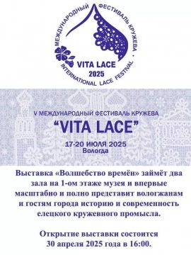 Друзья, мы готовы объявить заглавную новость этого года для кружевниц, художников, коллекционеров, дизайнеров и всех ценителей кружевного искусства! Даём старт Международному фестивалю «Vita Lace»! Пятый по счёту фестиваль пройдёт в Вологде с 17 по 20 июля 2025 года, а центральной его темой станут «Герои Земли и Неба».