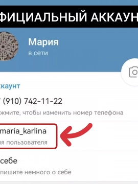 Официальный аккаунт Вы можете найти по ссылке https://t.me/maria_karlina