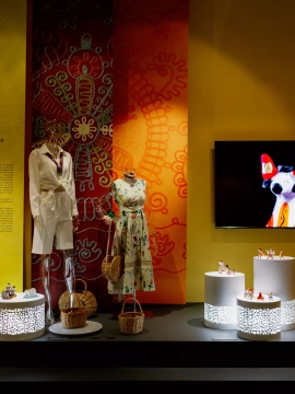 После вступительного слова и модного показа всех гостей пригласили увидеть своими глазами уникальную красоту, созданную в рамках слияния народных художественных промыслов и современной моды. Экспозиция представляет изделия НХП — предметы одежды, интерьера и быта, работы российских дизайнеров, арт-объекты, созданные современными художниками и мультимедийные инсталляции. Гости познакомились с работами широко известных предприятий: «Торжокские золотошвеи», «Казаковская филигрань», «Елецкие кружева», «Гжельский фарфоровый завод», «Фабрика Оренбургских пуховых платков», «Хохломская роспись», «Объединение художников Палеха», «Дымковская игрушка», Жостовская фабрика декоративной росписи и многих других.