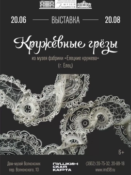 С 20 июня по 20 сентября 2024 года в Иркутске, в Доме-музее Волконских будет открыта уникальная выставка изделий известной российской фабрики НХП "Елецкие кружева" "Кружевные грёзы".
