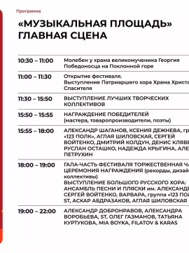 XIV Межрегиональный творческий фестиваль славянского искусства «Русское поле» состоится 9 августа 2025 года в Парке Победы на Поклонной горе.