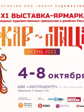 Ассоциация «Народные художественные промыслы России» открывает сезон выставок! Мы уже готовы к Выставке-ярмарке «ЖАР-ПТИЦА», которая является ежегодным местом встречи мастеров народных художественных промыслов и ремесленников из регионов России, работающих в области народного искусства, и постоянных покупателей – москвичей и гостей столицы, а также представителей торговли, гостиничного и туристического бизнеса. Выставка проходит два раза в год: весной и осенью.